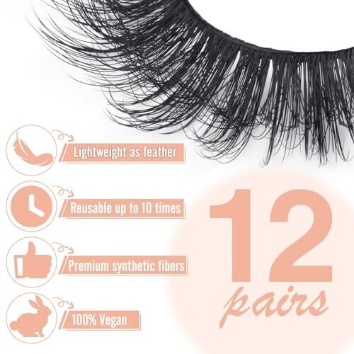 Alicrown Fluffy Eyelashes Natural Wispy False Lashes 12 Pairs Faux Mink C Curl