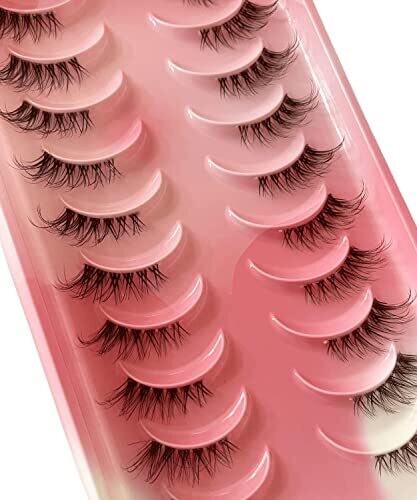 Half Lashes 10 Pairs Clear Band Russian Strip Lashes 6D False Eyelashes Fluffy Dramatic Natural Look (AF25)