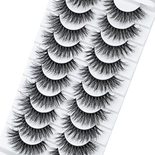 Experience dramatic, fluffy 16mm volume lashes for a bold look. Reusable, lightweight and comfortable with a flexible cotton band. Handcrafted faux mink fibers blend naturally with real lashes. Ten pairs in a vegan, cruelty-free multipack for stylish, guilt-free glamour.