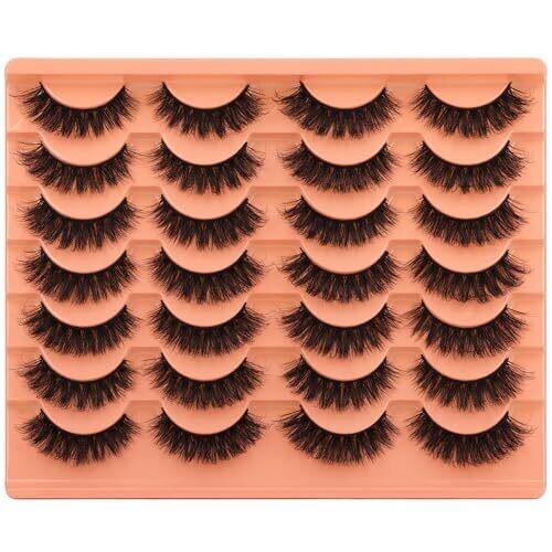 14 pairs of faux mink false eyelashes in wispy cat eye style. NATURAL APPEARANCE