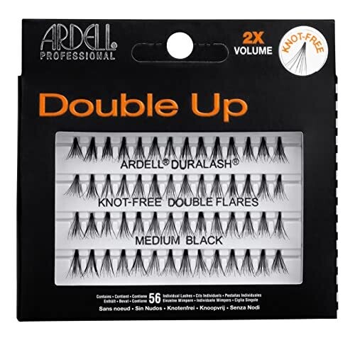 Create dramatic looks with Double-Up Individuals—twice the thickness for a glam lash line. Knot-free clusters of 20 for seamless application. Ideal for outer corners or filling sparse areas; use more for fullness or less for natural enhancement. Medium length, black.