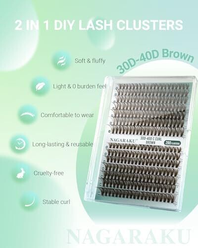 • Nagaraku Brown Lash Clusters 280pcs 30D&40D Clusters Eyelashes 0.07Mm D Curl 9-15Mm