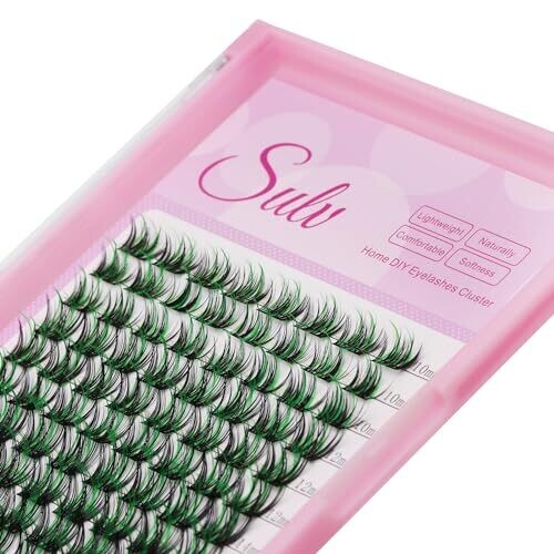 • Sulv Lashes Cluster D Curl:96Cluster 10-18Mm Black Green Eyelashes (WM005-Black Green-12Mm)