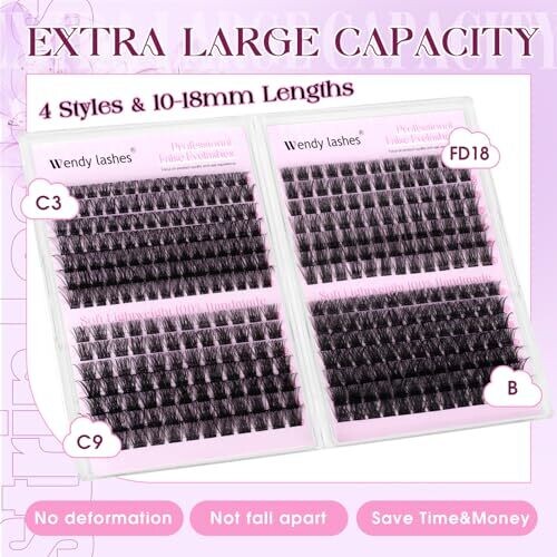 Four styles of lash clusters with lengths ranging from 10 to 18 mm. One box provides multiple options for varied makeup styles. Secondary reinforcement at the roots helps prevent shedding and deformation. Clusters are fluffy, curled, and designed to retain shape even when exposed to water. Made from environmentally friendly A-grade materials; lashes are soft, light, and nearly imperceptible when worn. The volume clusters have a fine, realistic appearance with a matte finish. Easy application for home use with lash glue (not included) and professional-looking results. Guaranteed after-sales service with return or exchange options if unsatisfied.