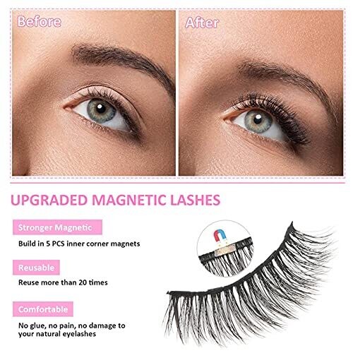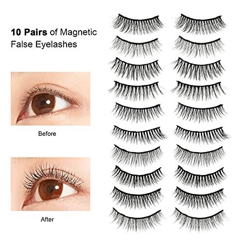 • Includes tweezers, two bottles of magnetic liquid eyeliner and 10 pairs of magnetic lashes