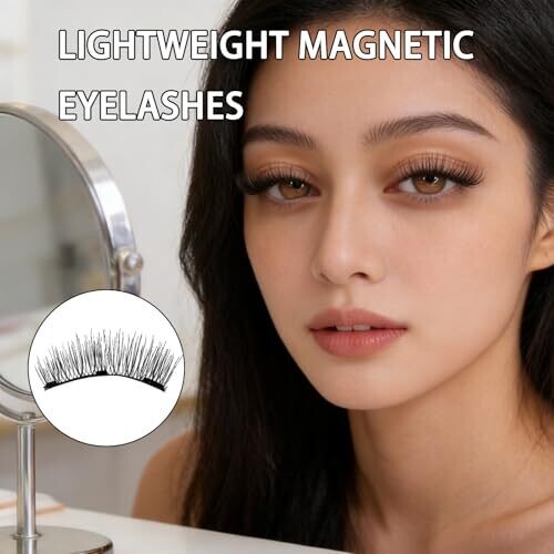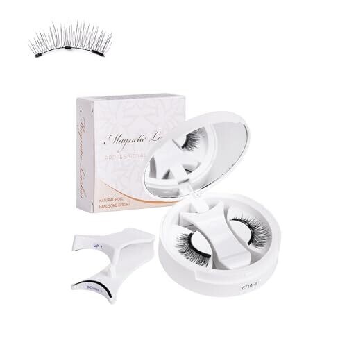 No glue is required. The eyelashes use a magnetic "sandwich" method to click into place without chemicals, suitable for sensitive eyes and contact lens wearers. Removal is performed by sliding the magnets apart without pulling. The finish is naturally wispy, produced with ultra-fine synthetic fibres that resemble real hair. The kit is complete and portable, featuring a built-in mirror and a slot for the applicator tool. The band is curved to fit the eyelid shape, and the magnets are strong yet flexible to provide a secure and comfortable fit all day. The design is reusable, intended to reduce waste and offer value relative to single-use lashes, with care maintaining magnetic strength and shape.
