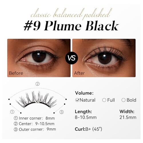 • Wosado Magnetic Eyelashes Kit with [No.09 Plume Black] Glue-Free Lashes