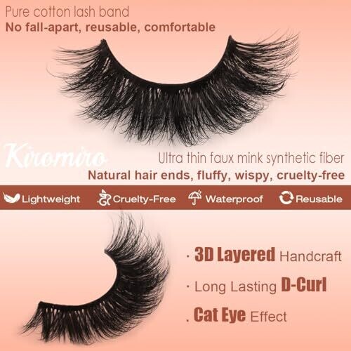 • Kiromiro Mink Lashes delivers a dramatic 18mm 3D volume cat-eye look for a bold, camera-ready gaze.
