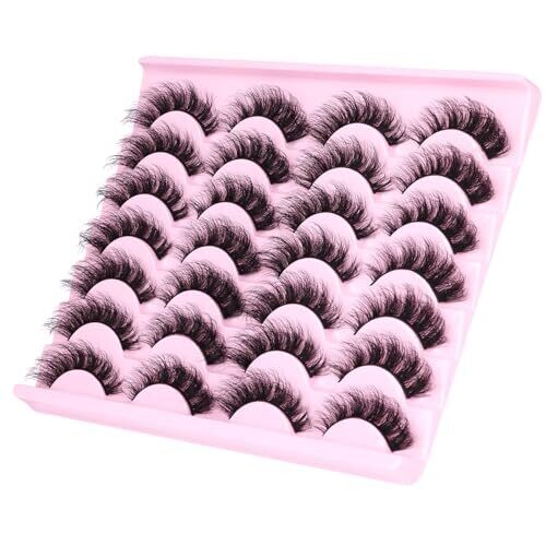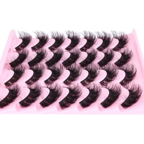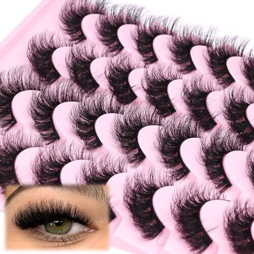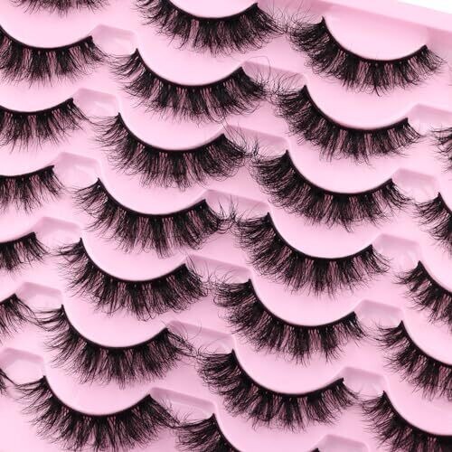 Jimire Mink Lashes Wispy Cat Eye 6D Volume False Lashes Look Like Extensions 16Mm D-Curly 7 Pairs