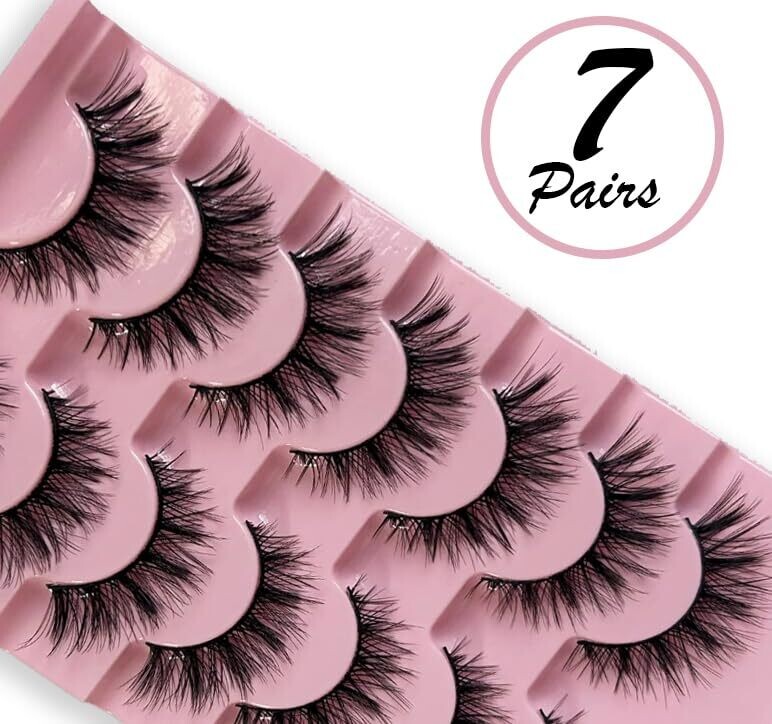 Marfs Premium False Eyelashes Wispy Lashes Curl Eyelash Natural Look 7 Pairs Handmade 3D Faux Mink Lashes