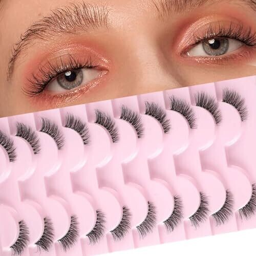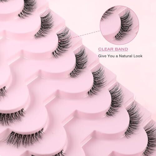 Itadaku False Lashes with Clear Band - 10 Pairs Reusable Natural Cat Eye Wispy Corner Lashes, 3/4 Transparent Faux Mink
