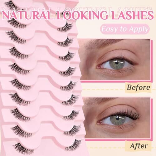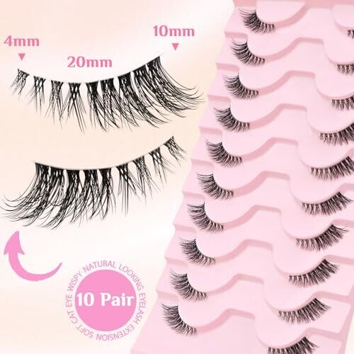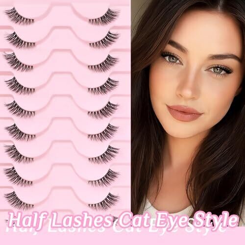Slsxnl Half Lashes Natural False Eyelashes Clear Band Wispy Cat Eye 10 Pairs