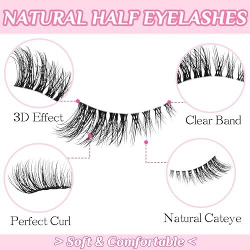 SLSXNL Half Lashes Natural Look False Eyelashes Clear Band Wispy Lashes Cat Eye; Quantity