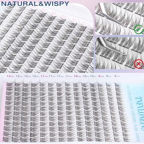 • Tnfvloneins Natural Lash Extension Kit 168pcs Lash Clusters Wispy 9-12Mm with Bond and Seal Glue & Tweezers
