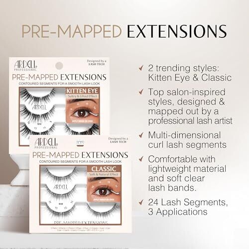 • Ardell Pre-Mapped Eyelash Extensions Kit - False Lashes Reusable Strips 4 Pack