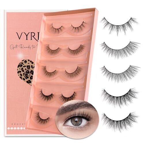 Vyrila Wispy Lashes 0.05Mm PBT Fiber Eyelashes, 0.2Mm Superfine Band Cat-Eye False Lashes (Luxe-5 Pairs In 1 Pack)