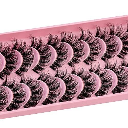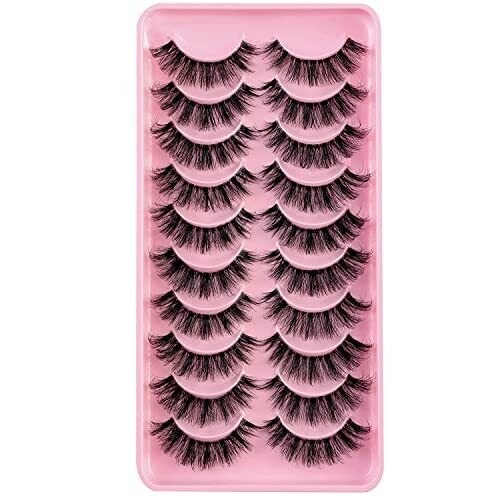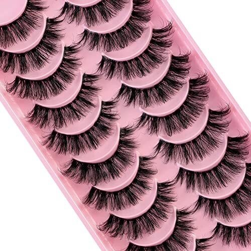 Aimall 10 Pairs Russian D Curl Strip Lashes 3D Wispy Fluffy Handmade Reusable Synthetic Mink Eyelashes 6–10Mm Full Volume Set