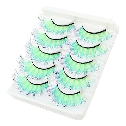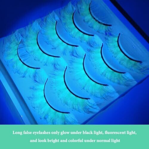 5 Pairs Charming False Eyelashes Fluorescence Green Glow In Dark for Women Reusable