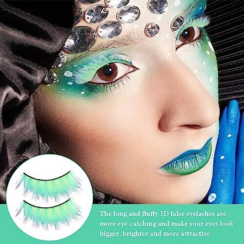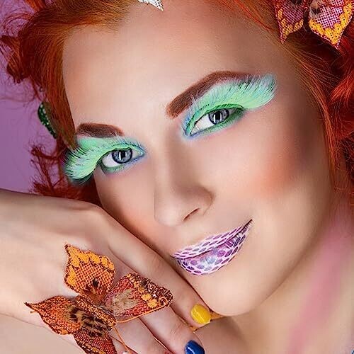 These charming false eyelashes provide a green fluorescence glow in the dark effect. Reusable and suitable for cosplay, parties, Halloween. Wispy, dramatic cat-eye style to enhance looks for women, with comfortable wear and eye-catching appeal.
