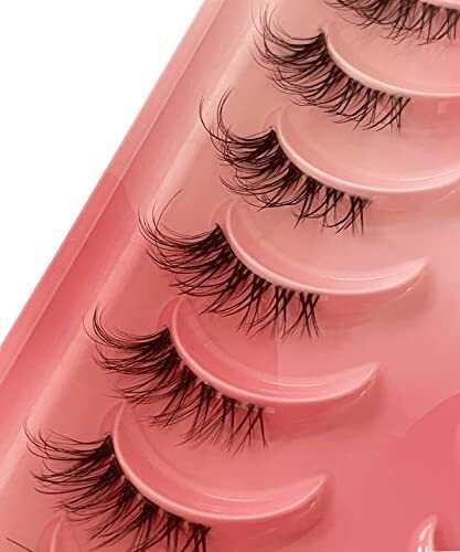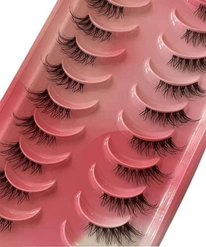 • Half Lashes 10 Pairs Clear Band Russian Strip Lashes 6D False Eyelashes Fluffy Dramatic Natural Look (AF25)