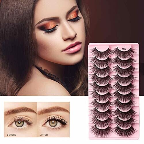 Clear Band Eyelashes Russian Volume Strip Lashes 10 Pairs Natural Wispy D Curl False Lashes Look Like Extensions (HDY7)