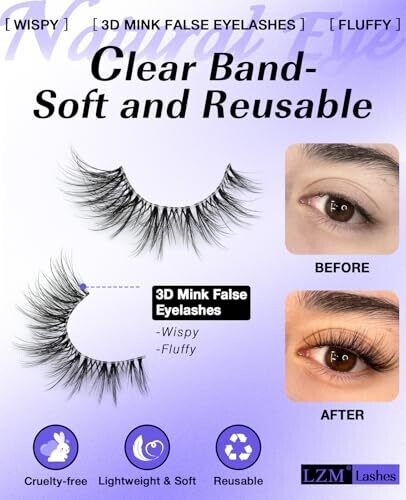 14mm fluffy wispy lashes deliver bold, camera-ready volume with a seamless clear band for natural-looking lash line. Lightweight and reusable for daily wear or special occasions. Easy to apply and remove, with dramatic yet wearable 3D full-strip effect.