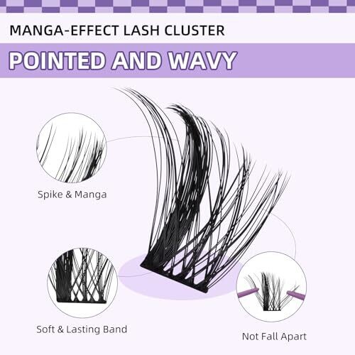 spike-and-sweep manga lash clusters with angled spikes and upturned tips that form a cat-eye silhouette.