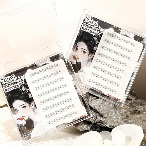 False Eyelashes Set, Individual, 10.4 X 9.8 cm Clear Case, 8 Rows