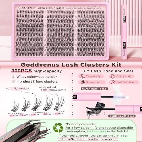 • Goddvenus Wispy Cluster Lashes Kit offers a professional-grade, salon-inspired result at home with a soft, natural finish.