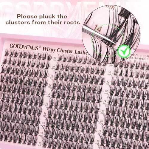 • Goddvenus Wispy Cluster Lashes Kit C Curl 10-16Mm Individual Lashes