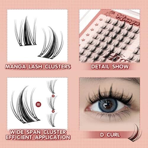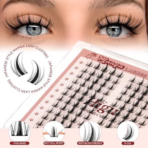 Higu clace manga lash clusters offer natural-looking, individual eyelash extensions in a 120-piece set. Ideal for DIY lash lovers, these D curl clusters create a curled, glamorous look for anime-inspired lashes at home.
