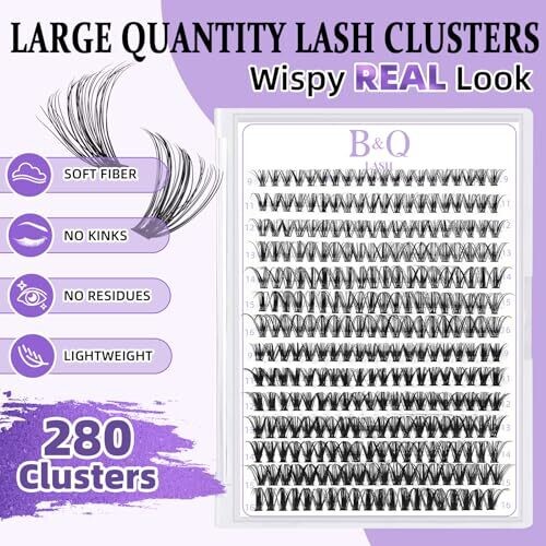 Discover effortless lash styling with a versatile mix for natural to glam looks. Includes 280 lightweight, vegan clusters for quick at-home application, comfortable wear, and reusable results with proper care.