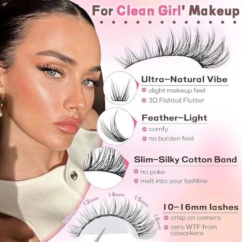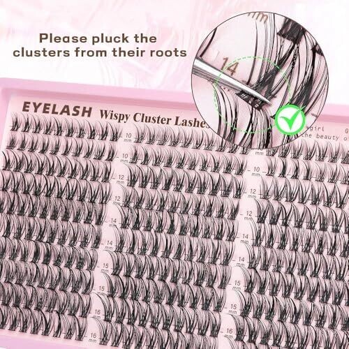 • Lash Clusters Kit Wispy Eyelash Clusters DIY Lash Extensions 10-16Mm C Curl (No Tweezers)