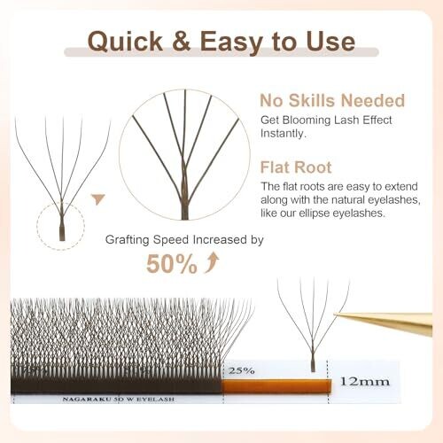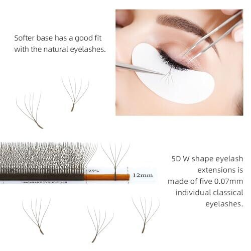These premade W cluster extensions are handmade, designed for direct grafting of five lash extensions at once, suitable for professional salon use; approximately 100–140 bundles may be needed per client, with one tray usable on 10–15 customers.