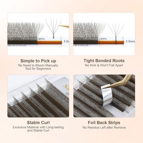 Foil-backed packaging facilitates picking up and transfer with minimal residue, and the W premade fans are designed to be user-friendly for beginners and experienced technicians alike.