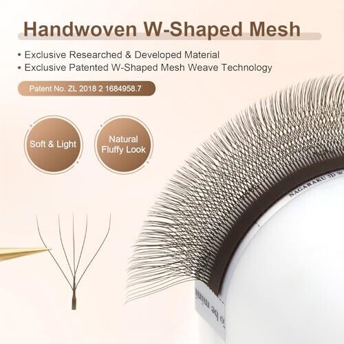 NAGARAKU Dark Brown 5D W premade lash fans Volume Lash 0.07 mm C Curl 8-15 mm Mix features brown 5D W lash version 3.0, where the roots of the five individual extensions are bonded together in a W shape (W clover lash extensions).