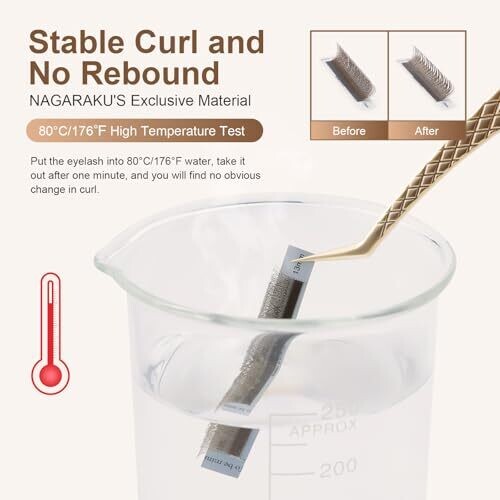 The lashes are made from premium material developed by NAGARAKU, described as light, soft, and natural, with SGS and MSDS certification indicating quality standards.