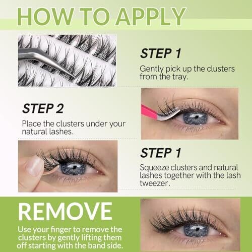 • Self-adhesive eyelash clusters with pre-glued lash clusters for quick application