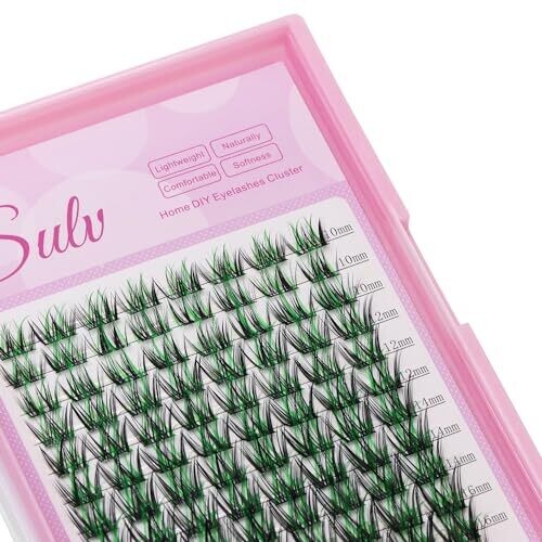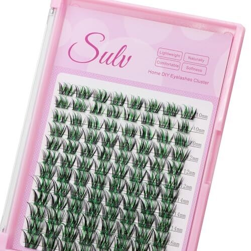 Sulv Lashes Cluster D Curl offers customizable volume with natural-looking clusters. Includes 96-piece cluster set in 10-18mm lengths in Black Green, Black Blue, Dark Brown, Pink, Dark Red, and Dark Green. DIY or professional at-home lash extensions, reusable.