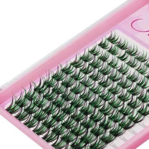 • Sulv Lashes Cluster D Curl:96Cluster 10-18Mm Black Green Eyelashes (WM005-Black Green-12Mm)