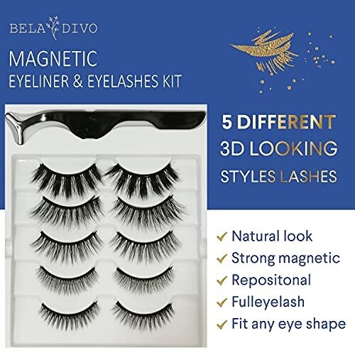 Bela Divo Magnetic Eyeliner with Eyelashes Kit - Upgraded, Reusable Lashes (5 Pairs)