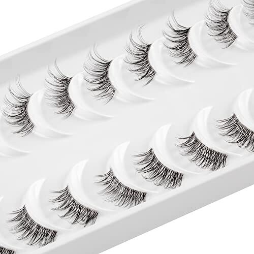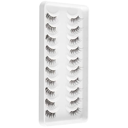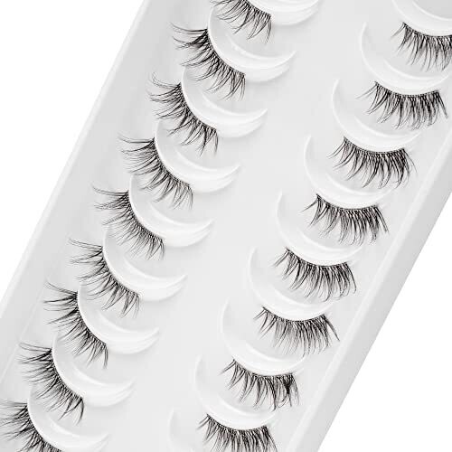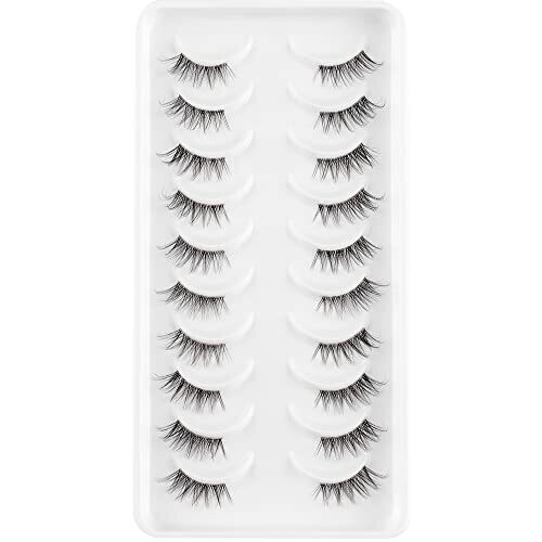 Glowing Win Half Lashes with Clear Band 10 Pairs Eye Lashes Wispy Corner 3/4