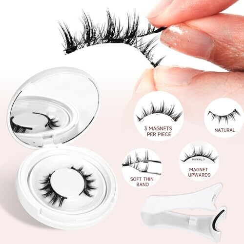 Effortless magnetic lashes that look natural and lightweight for everyday wear. No glue or eyeliner needed—quick application and removal. Includes magnetic lash kit with applicator and compact packaging for easy handling and travel.