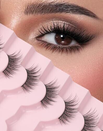 Slsxnl Half Lashes Natural False Eyelashes Clear Band Wispy Cat Eye 10 Pairs