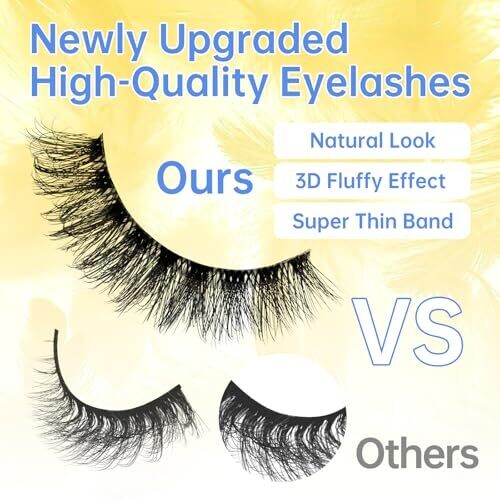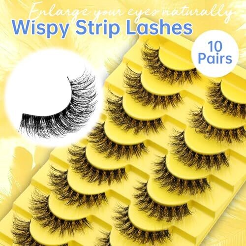 Elegant, natural-looking wispy lashes for everyday wear or special occasions. Ultra-thin lash band delivers invisible, comfortable wear. Reusable design uses premium synthetic fibers for long-lasting use. Fluffy curl subtly enlarges eyes for a flattering look, beginner-friendly application.
