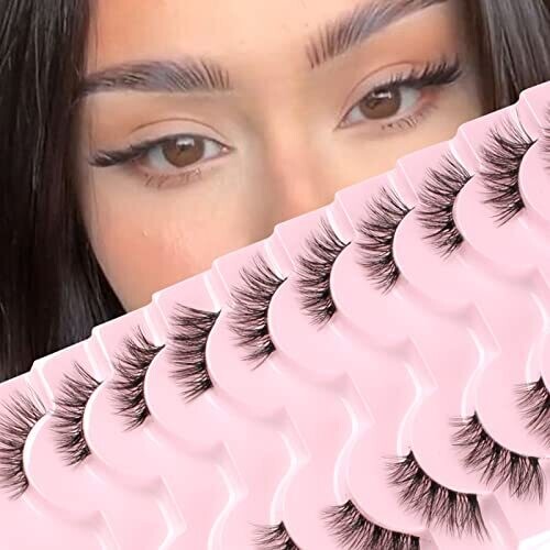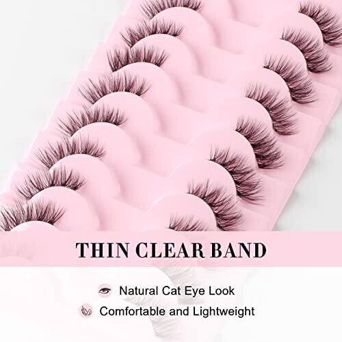 Natural Look Half Lashes Cat Eye 16 Mm Wispy Thin Band Manga Lashes 10 Pairs