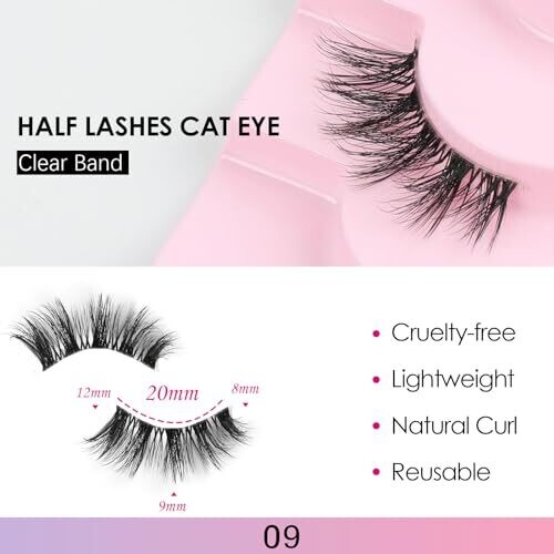 • Glowing Win Half Lashes with Glue Natural Look False Eyelashes Clear Band Bond Remover 10 Pairs Cat Eye Kit