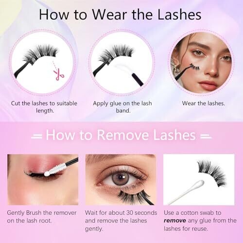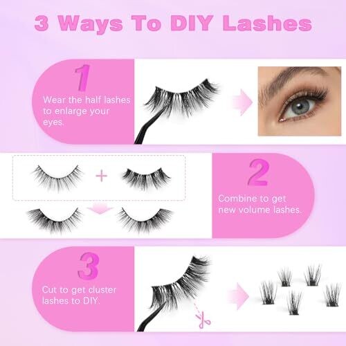 Wear them as half lashes for a natural look; Combine them with full-length lashes for a high-volume effect; DIY by cutting them into cluster lashes to create custom styles and effects. A personal beauty salon at home!