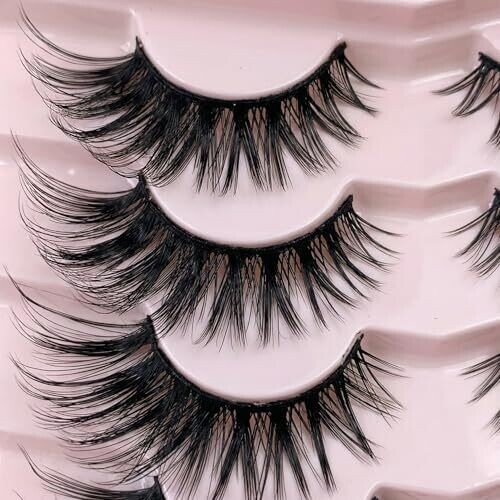 Imtkooco Natural Look False Eyelashes 7 Pairs, Wispy Lashes with Thin Band
