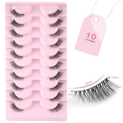 Itadaku False Lashes with Clear Band - 10 Pairs Reusable Natural Cat Eye Wispy Corner Lashes, 3/4 Transparent Faux Mink